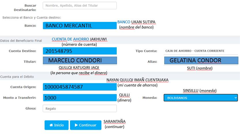 BANCA INTERNET UKAR MANTAÑAX MÄ BANCO UKANX MAYJ MAYJAWA, SAÑÄNI (el acceso a la banca por Internet varía de un banco a otro, por ejemplo).