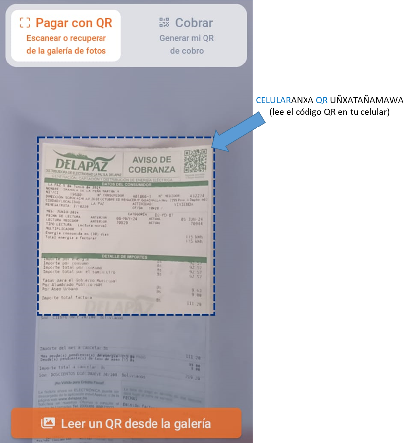 UKA QR UKAX CELULARAN UÑJATÄÑAPAWA (el QR debe estar visible en el celular).